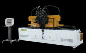 A state-of-the-art CNC bending system featuring dual synchronized bending heads with full 8-axis control (X/Y/Z linear axes + rotary axes + independent head articulation) for ultra-complex, multi-plane tube and pipe forming. The twin-head design enables simultaneous processing of two workpieces or collaborative bending of large/delicate components with perfect synchronization.